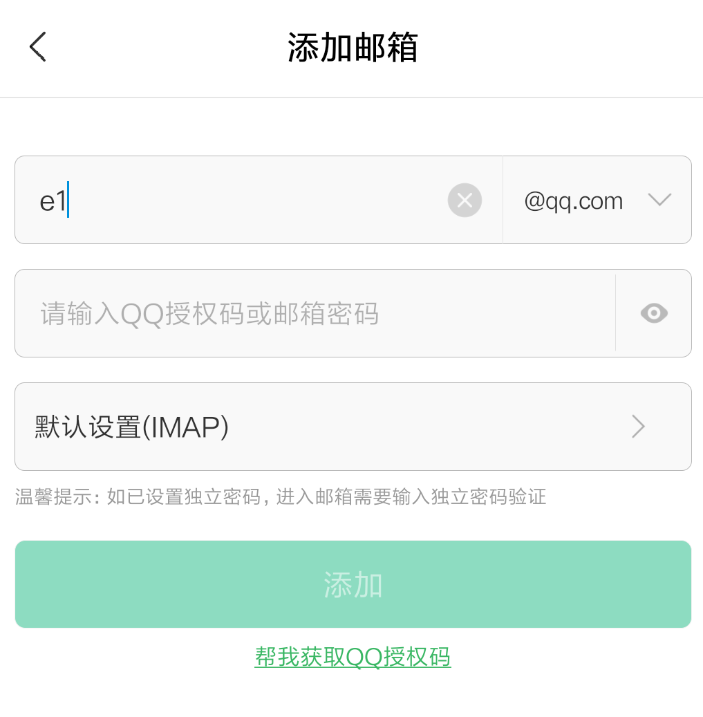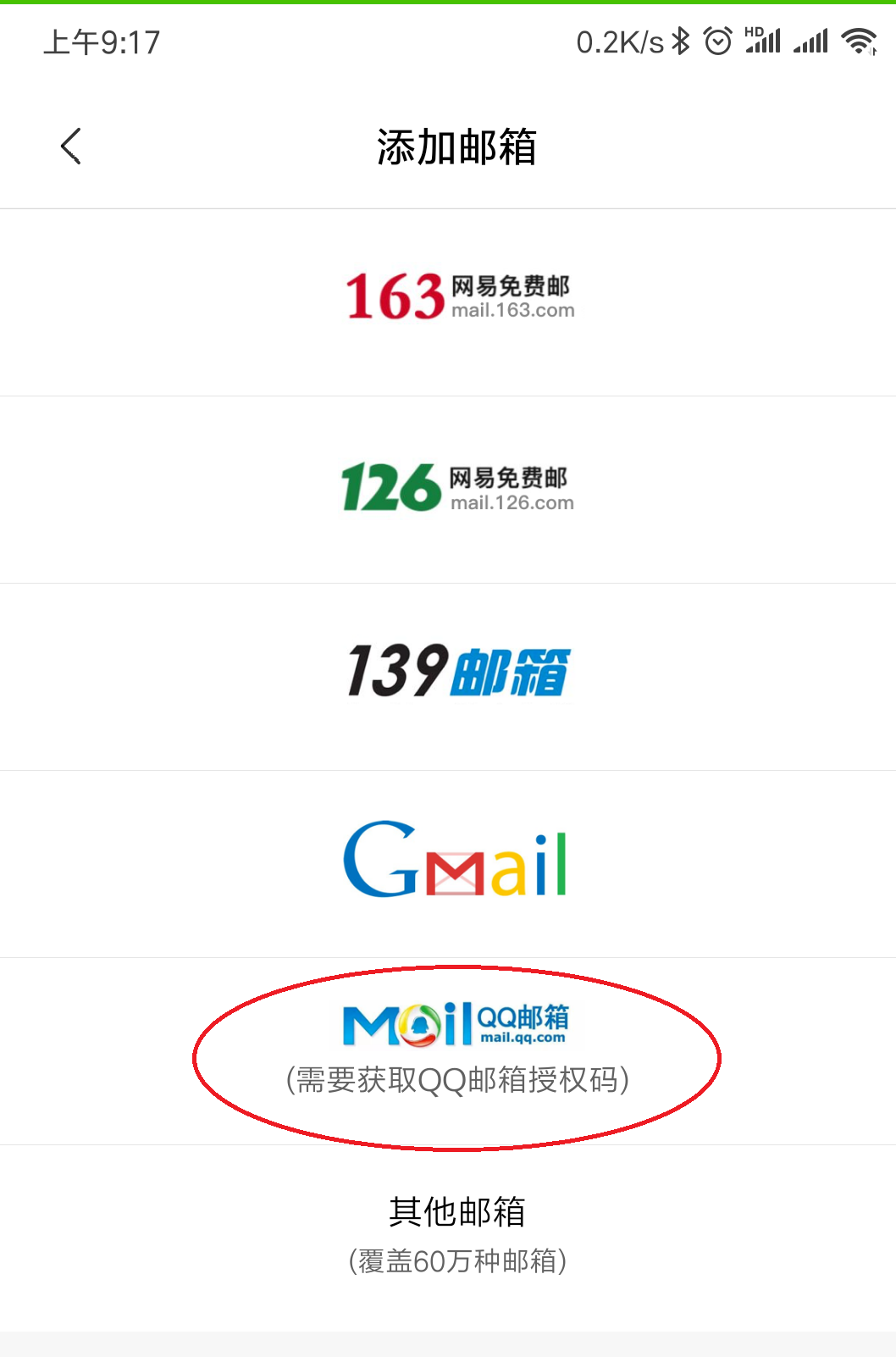 打开邮件app后、添加邮箱时选择QQ邮箱(本次以小米手机最新系统为例,不同手机可能有所差别):